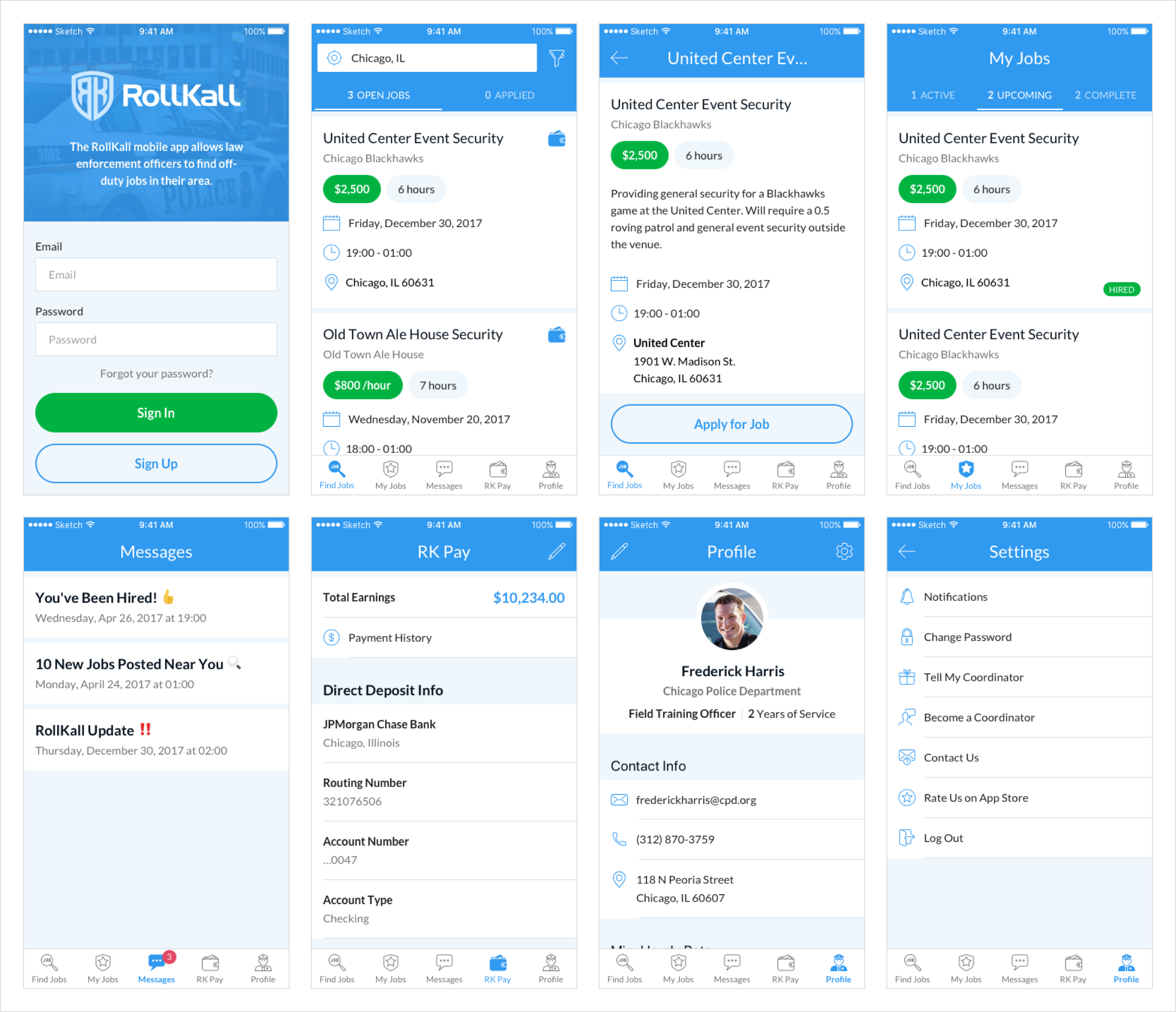 RollKall allows Coordinators, Security Agencies, and Businesses to hire law enforcement officers and provides all of the management tools needed to manage those jobs.